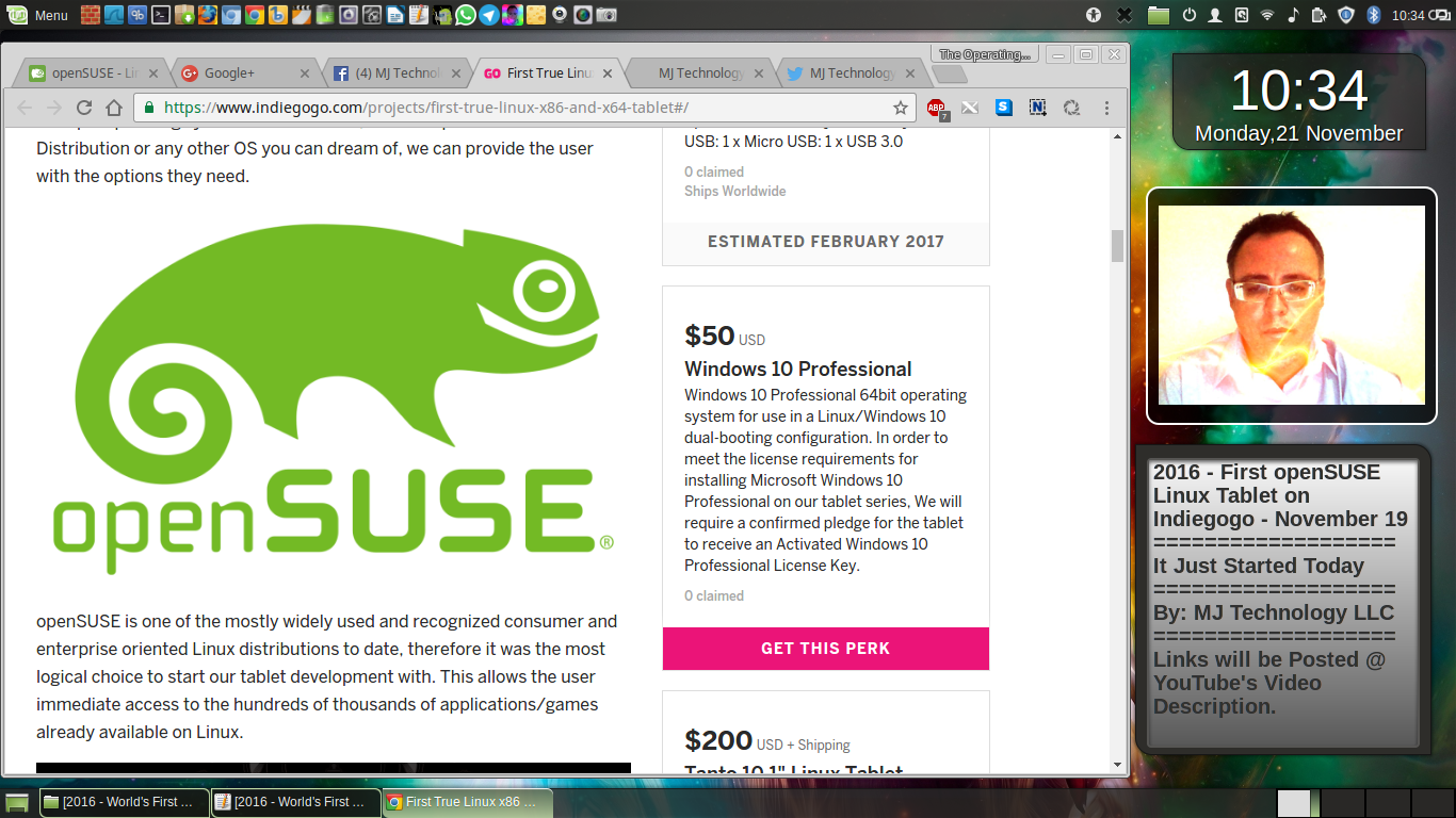 2016 - World's First openSUSE Linux Tablet on Indiegogo.com - November 21